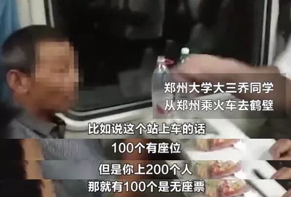列车长耐心向大爷解释,并举例:比如说,这个站将有200个人上车,但火车只有100个座位,那么其中100个人就只能是“无座票”。