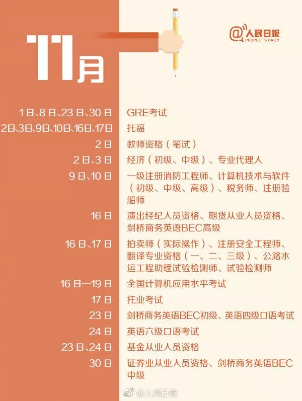 送你一份2019新学期的考试日历↓↓提前计划,为目标努力起来!