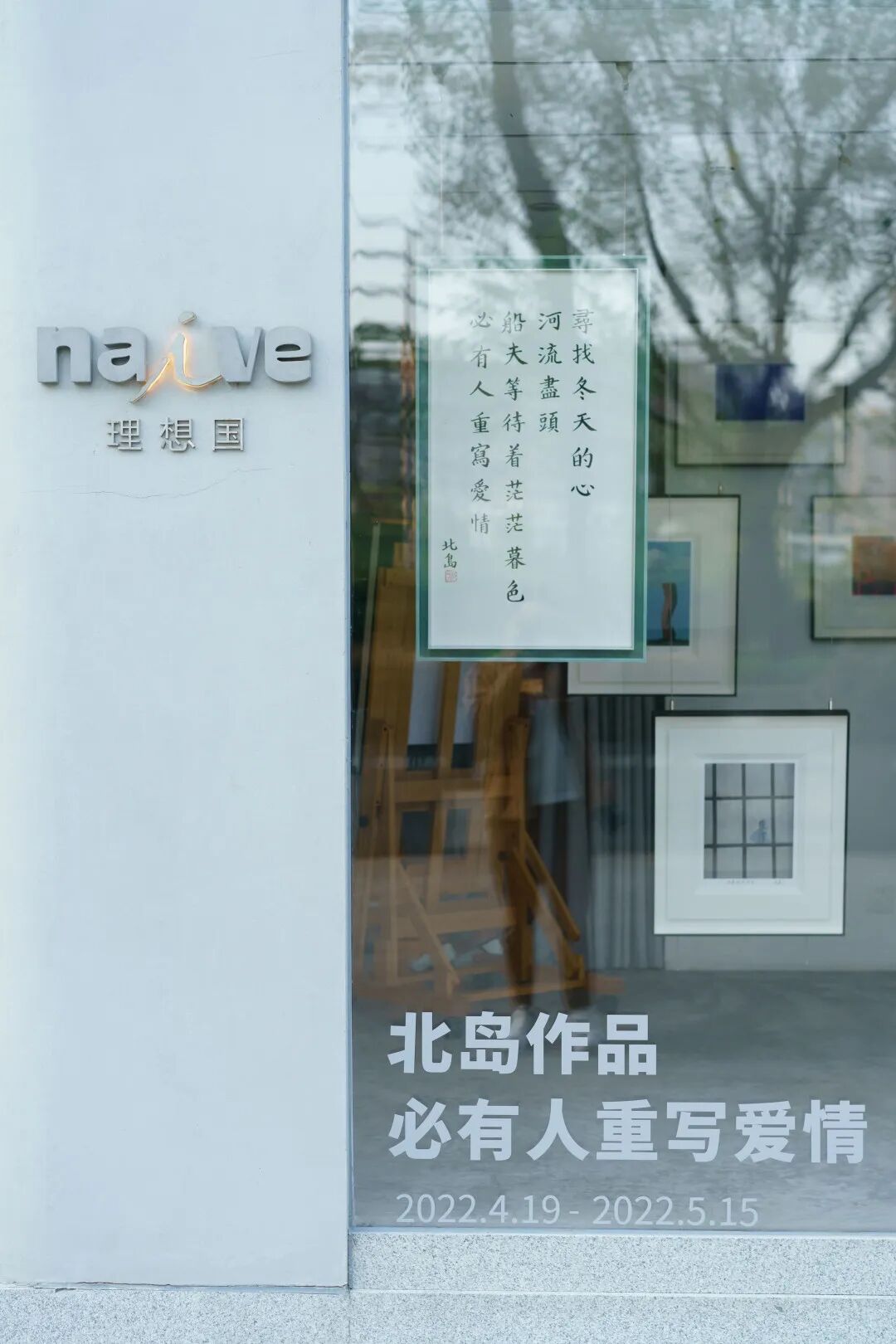 在naive理想国·北京郎园店,《必有人重写爱情》同名展览正在举办,现场展出有北岛的绘画、摄影、书法、诗歌手稿等艺术作品。