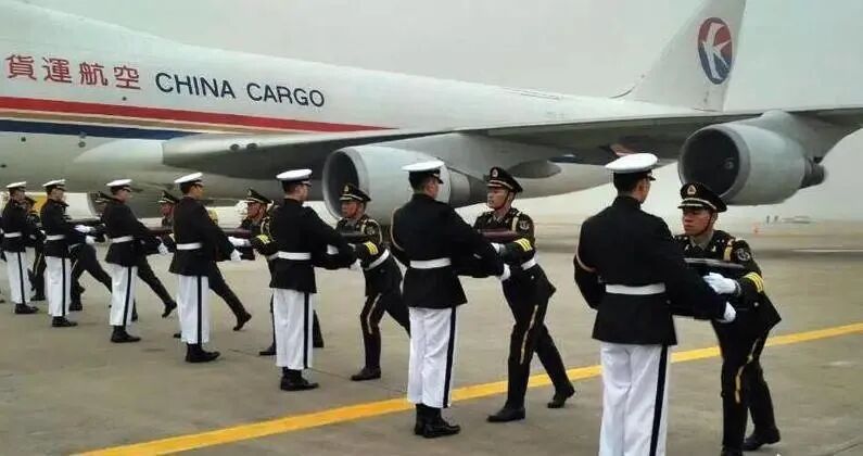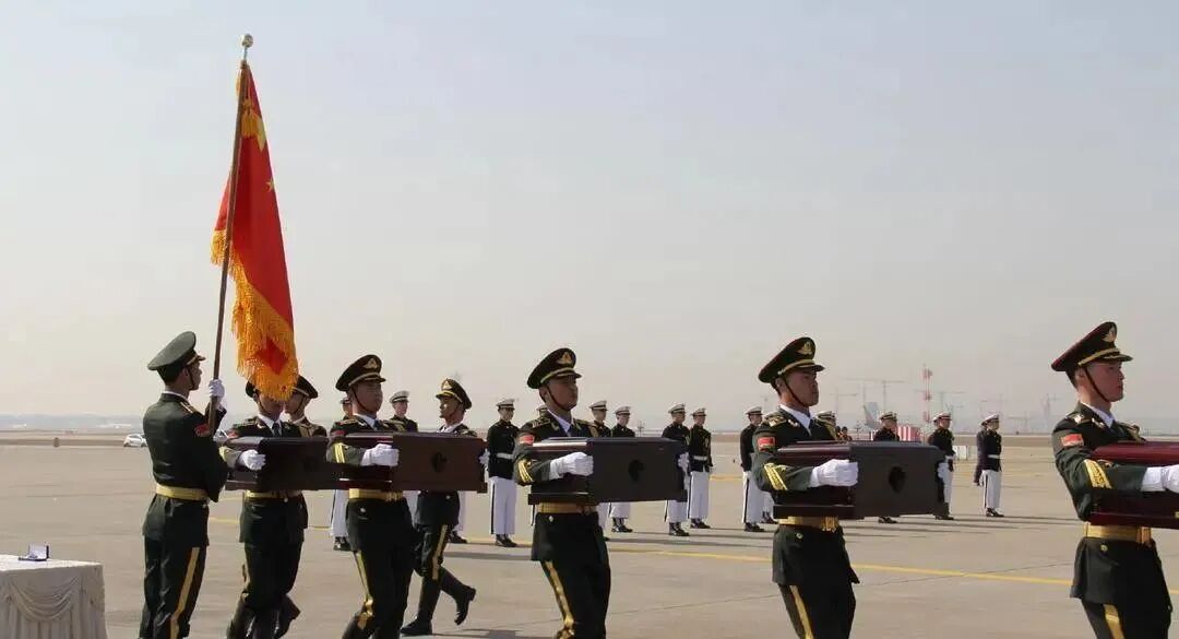 2019年4月3日,第六批在韩中国人民志愿军烈士遗骸由我空军专机护送从韩国接回辽宁沈阳,10位志愿军烈士英灵回到祖国和人民怀抱。