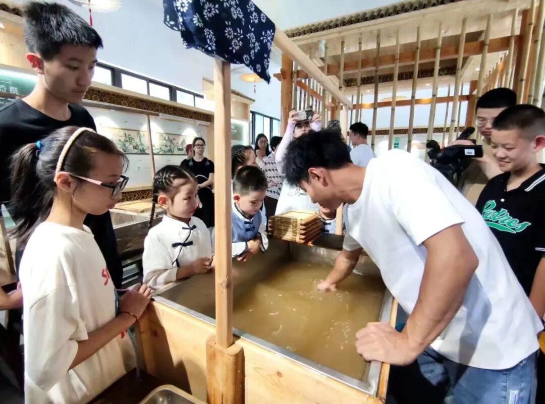 At the hall, a variety of paper-making tools, old-fashioned letters and ancient books recording historical materials are displayed, and the detailed procedures of ancient paper-making techniques are hung on the wall. According to Yuan Jianzeng, the provincial inheritor of intangible cultural heritage and the second-generation inheritor of ancient paper making technique, “the ‘Paper-related Intangible Cultural Heritage Hall’ not only displays the history of papermaking, but also attracts young people to participate in the inheritance of ancient papermaking techniques.”