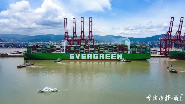 这艘由中国自主设计和建造的货船在6月下旬下水后超越“长范”轮成为世界上最大的集装箱船,预计将在宁波舟山港梅山港区装卸8469个集装箱。