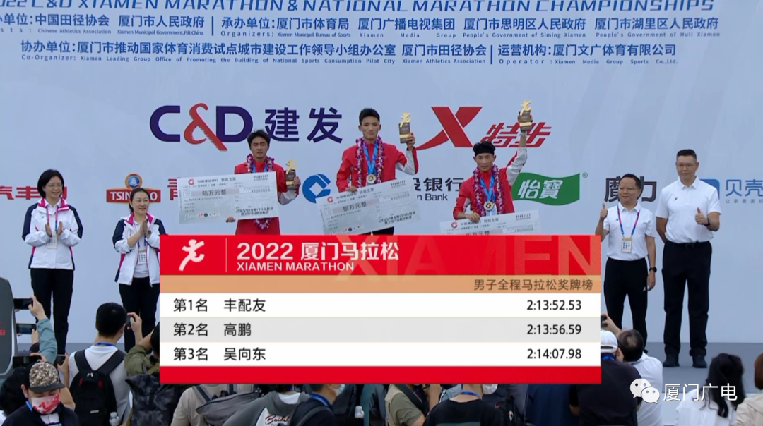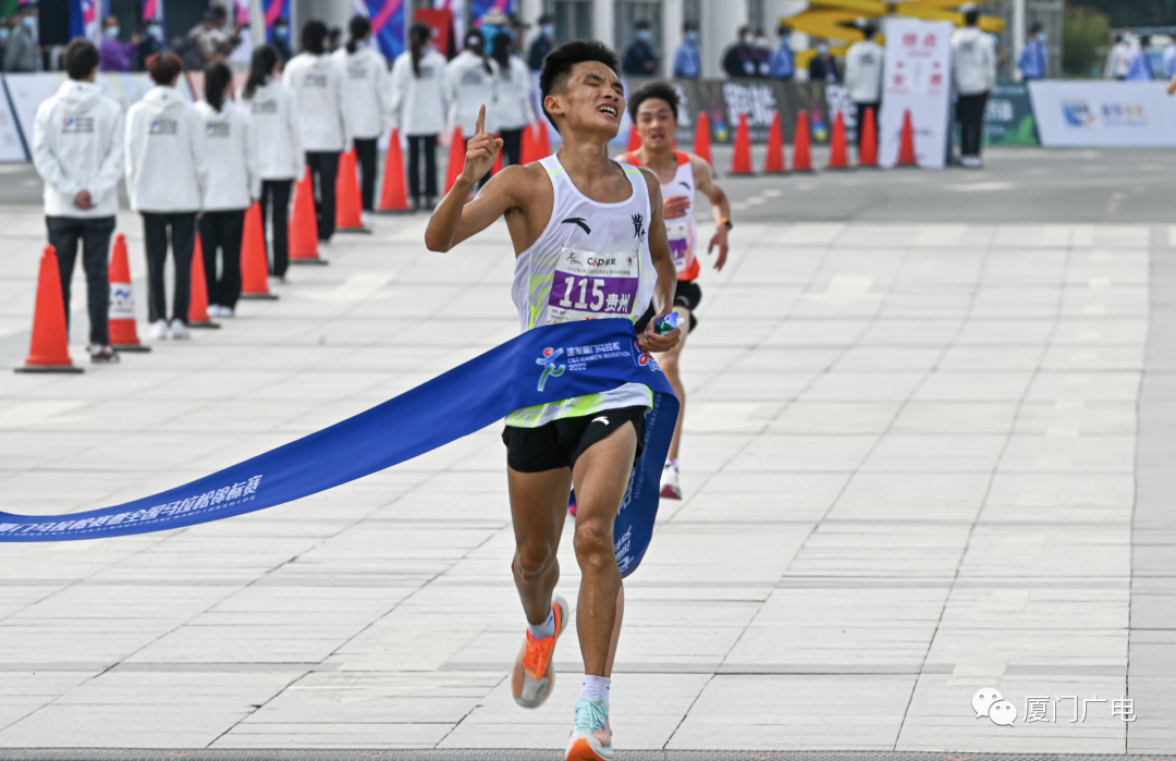 2022建发厦门马拉松赛暨全国马拉松锦标赛男子组冠军刚刚诞生!出生于2001年的贵州选手丰配友头名撞线,成为厦马史上第一个00后冠军!成绩为2小时13分53秒!