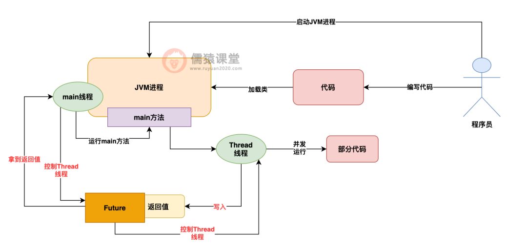 可是问题是,你是希望等到这个 thread 线程运行结束以后给你一个返回值的,可是你又不知道这个 thread 线程什么时候运行完毕,你更不知道这个 thread 线程如何把他的返回值交给你。