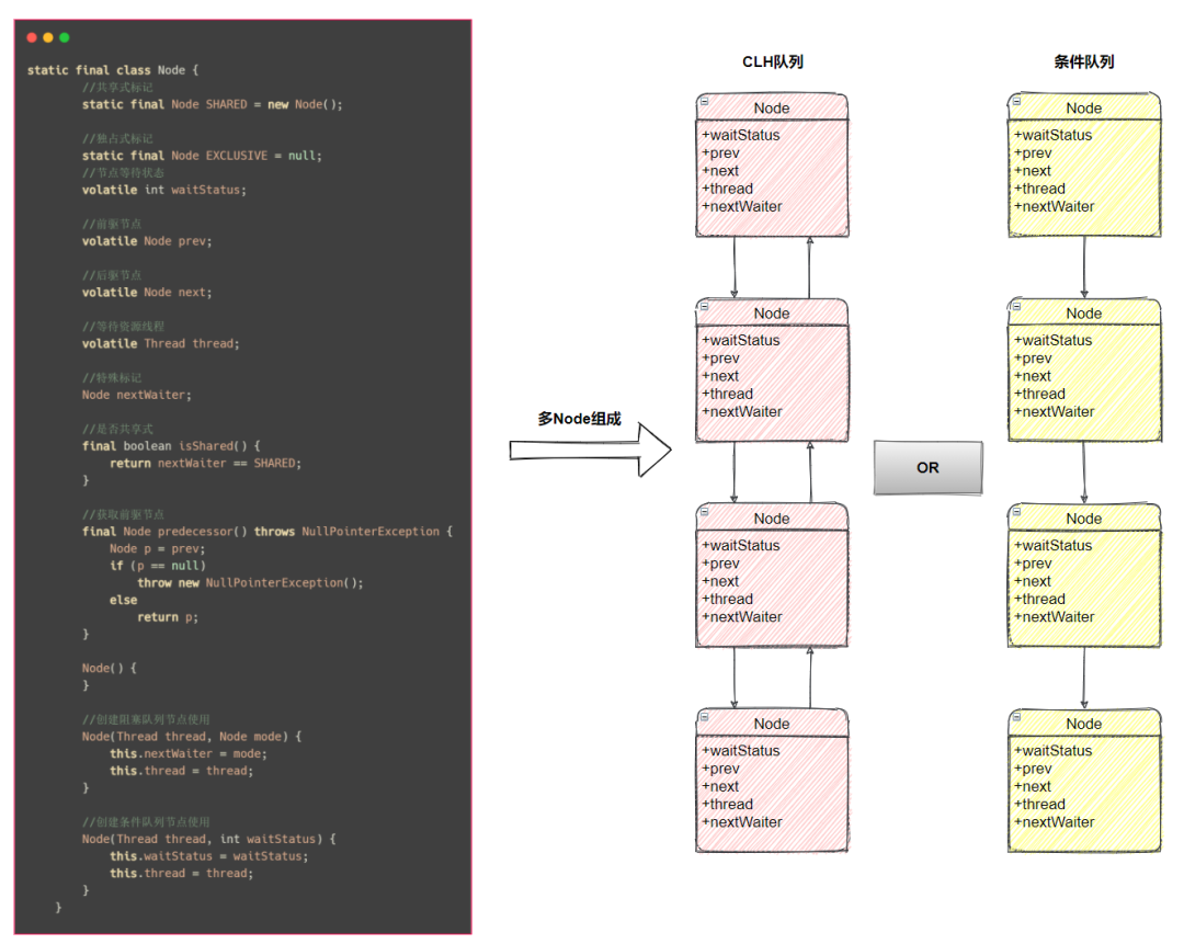 Node 是 AQS 的内部类。每个等待资源的线程都会封装成 Node 节点组成 CLH 队列、等待队列。所以说 Node 是非常重要的部分,理解它是理解 AQS的第一步。