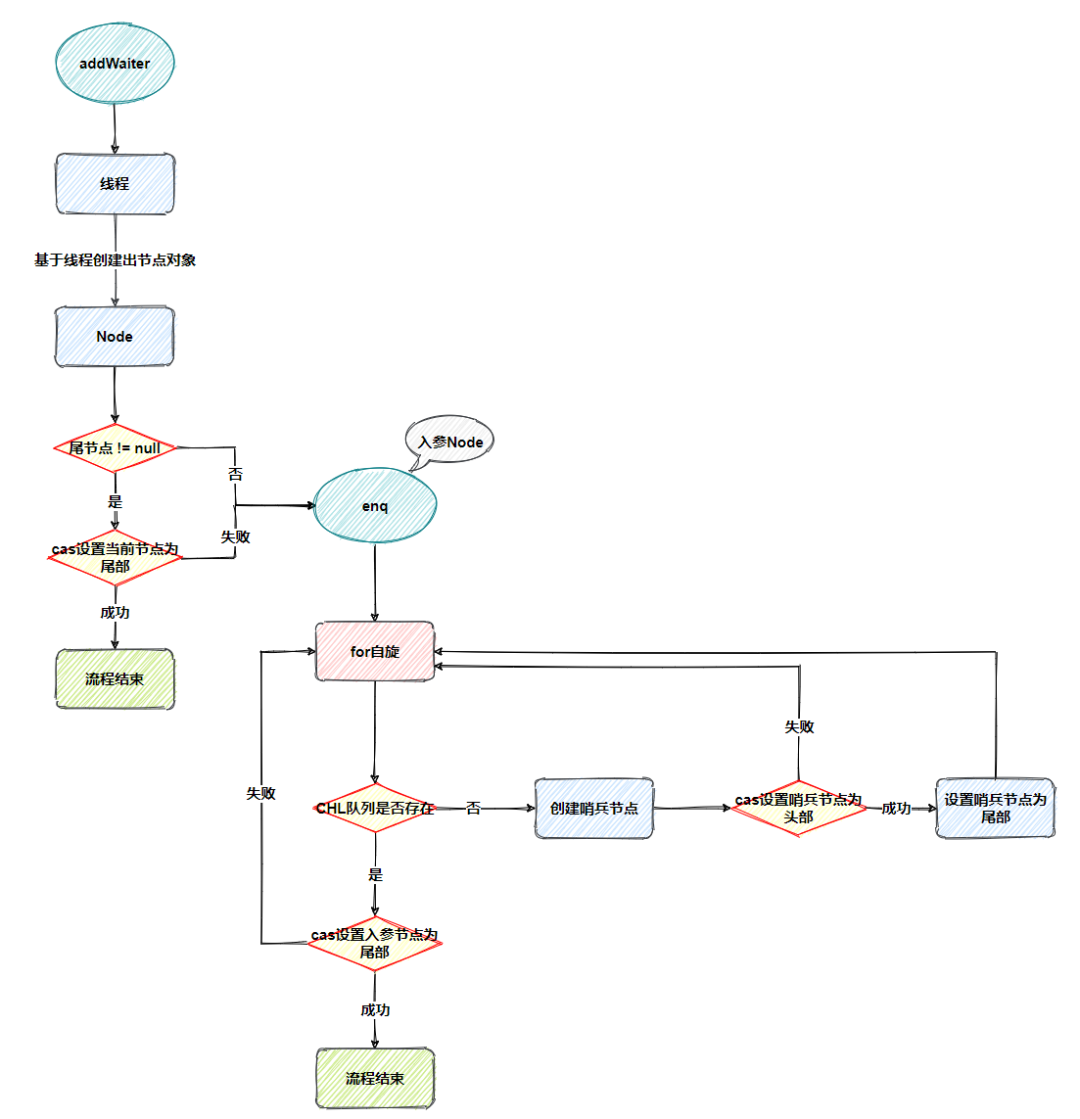最后结合 addWaiter 与 enq 函数的入队流程图如下: