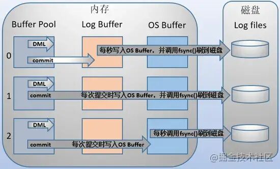 STATMENT:基于SQL 语句的复制( statement-based replication, SBR ),每一条会修改数据的sql语句会记录到binlog 中 。ROW:基于行的复制(row-based replication, RBR ),不记录每条sql语句的上下文信息,仅需记录哪条数据被修改了 。alter table 的时候会让日志暴涨MIXED:基于STATMENT 和 ROW 两种模式的混合复制(mixed-based replication, MBR ),一般的复制使用STATEMENT 模式保存 binlog ,对于 STATEMENT 模式无法复制的操作使用 ROW 模式保存 binlogmysql是如何保证一致性的呢?Innodb 是以 页 为单位进行磁盘交互的,而一个事务很可能只修改一个数据页里面的几个字节,这个时候将完整的数据页刷到磁盘的话,太浪费资源了!mysql 设计了 redo log , 具体来说就是只记录事务对数据页做了哪些修改,这样就能完美地解决性能问题了(相对而言文件更小并且是顺序IO)。redo log 包括两部分:一个是内存中的日志缓冲( redo log buffer ),另一个是磁盘上的日志文件( redo logfile)。mysql 每执行一条 DML 语句,先将记录写入 redo log buffer,后续某个时间点再一次性将多个操作记录写到 redo log file。这种 先写日志,再写磁盘 的技术就是 MySQL里经常说到的 WAL(Write-Ahead Logging) 技术。user space )下的缓冲区数据一般情况下是无法直接写入磁盘的,中间必须经过操作系统内核空间( kernel space )缓冲区( OS Buffer )。redo log buffer 写入 redo logfile 实际上是先写入 OS Buffer ,然后再通过系统调用 fsync() 将其刷到 redo log file中,过程如下:mysql 支持三种将 redo log buffer 写入 redo log file 的时机,可以通过 innodb_flush_log_at_trx_commit 参数配置,各参数值含义如下:redo log 实际上记录数据页的变更,而这种变更记录是没必要全部保存,因此 redo log实现上采用了大小固定,循环写入的方式,当写到结尾时,会回到开头循环写日志。redo log 需要刷盘,还有 数据页 也需要刷盘, redo log存在的意义主要就是降低对 数据页 刷盘的要求。write pos 表示 redo log 当前记录的 LSN (逻辑序列号)位置, check point 表示 数据页更改记录 刷盘后对应 redo log 所处的 LSN(逻辑序列号)位置。write pos 到 check point 之间的部分是 redo log 空着的部分,用于记录新的记录;check point 到 write pos 之间是 redo log 待落盘的数据页更改记录。当 write pos追上check point 时,会先推动 check point 向前移动,空出位置再记录新的日志。innodb 的时候,不管上次是正常关闭还是异常关闭,总是会进行恢复操作。因为 redo log记录的是数据页的物理变化,因此恢复的时候速度比逻辑日志(如 binlog )要快很多。innodb 时,首先会检查磁盘中数据页的 LSN ,如果数据页的LSN 小于日志中的 LSN ,则会从 checkpoint 开始恢复。checkpoint 的刷盘过程,且数据页的刷盘进度超过了日志页的刷盘进度,此时会出现数据页中记录的 LSN 大于日志中的 LSN,这时超出日志进度的部分将不会重做,因为这本身就表示已经做过的事情,无需再重做。binlog 和 redo log 的区别可知:binlog 日志只用于归档,只依靠 binlog 是没有 crash-safe 能力的。redo log 也不行,因为 redo log 是 InnoDB特有的,且日志上的记录落盘后会被覆盖掉。因此需要 binlog和 redo log二者同时记录,才能保证当数据库发生宕机重启时,数据不会丢失。undo log 实现的。undo log主要记录了数据的逻辑变化,比如一条 INSERT 语句,对应一条DELETE 的 undo log ,对于每个 UPDATE 语句,对应一条相反的 UPDATE 的 undo log ,这样在发生错误时,就能回滚到事务之前的数据状态。undo log 也是 MVCC(多版本并发控制)实现的关键。转自:夜尽天明_