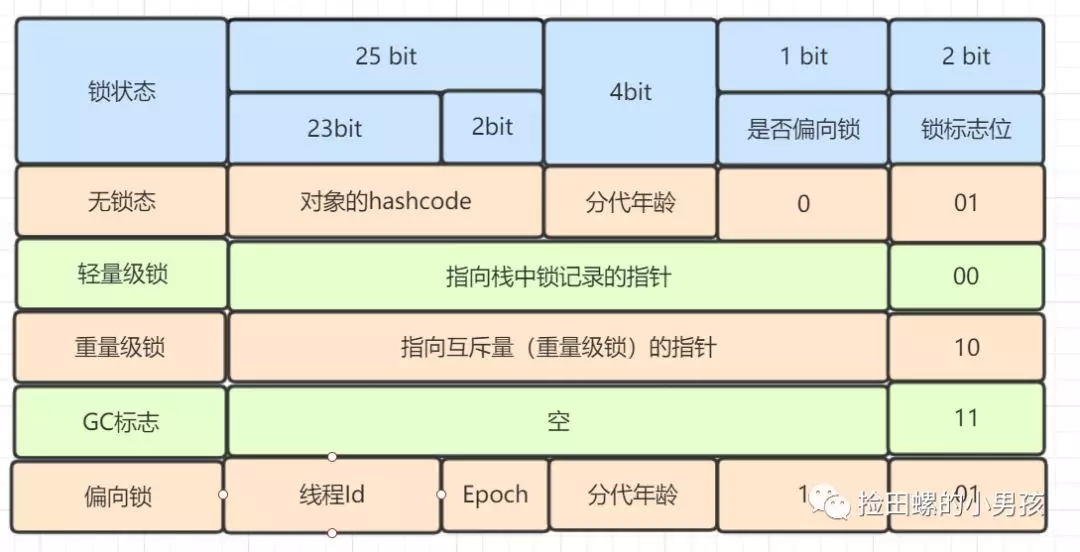 重量级锁,指向互斥量的指针。其实 synchronized 是重量级锁,也就是说 Synchronized 的对象锁,Mark Word 锁标识位为 10,其中指针指向的是 Monitor 对象的起始地址。