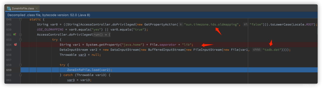 读取 $JAVA_HOME/lib/tzdb.dat,这是一个 JDK 时区存储文件。