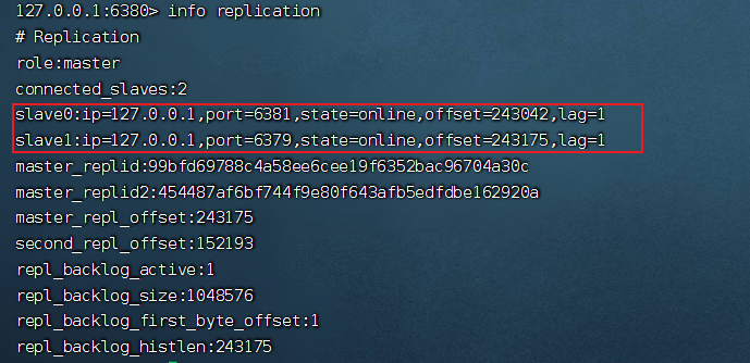 在 6379 客户端输入命令: info replication 可用查看集群信息