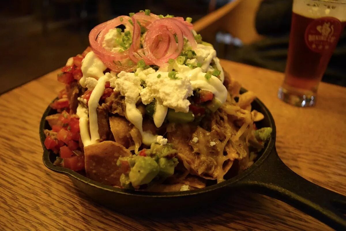 The food menu also doesn't intend to dazzle and must have been compiled with the limitations of Okra's sushi kitchen in mind (there's not a single gas stove present out back). Despite that, Boxing Cat has done well to construct a robust selection of bar food, including the highlight: a hulking pile of N'acho Average Nachos (RMB 75) covered in slow-roasted carnitas, salsa verde, sour cream, queso fresco, pickled onions, and guac. If that doesn't tide you over between pints, there are also mains like braised beef short rib quesadillas (RMB 78) and a grilled gruyere cheese toastie with tomato soup (RMB 65), the only friend you need come winter.