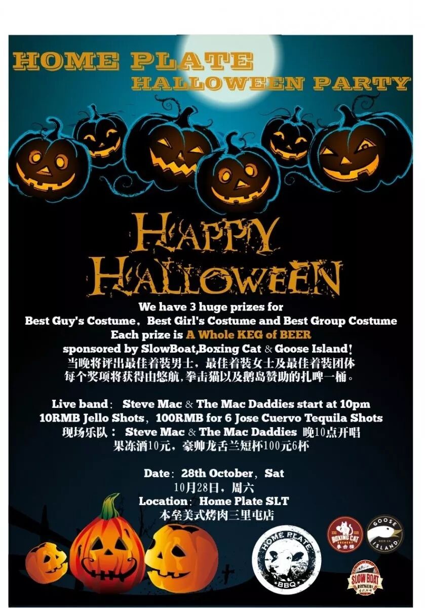 Come Saturday, Home Plate will host a costume contest, serve RMB 10 pumpkin pie Moonshine jello shots, and have live music from Stevie Mac and The Mac Daddies starting at 10pm. The best-dressed guy, girl, and group will each win a keg of beer from either Slow Boat, Boxing Cat Brewery, and Goose Island. There will be other unspecified drink deals and bloody beers all day and night. Go early to lay down a pre-party layer of Beijing's finest American-style barbecue while they screen Rocky Horror Picture Show, starting at 8.30pm. Showing up in Rocky Horror-related attire will also earn you a free jello shot from your host, Stevie Mac himself. Free. 8.30pm. Home Plate.