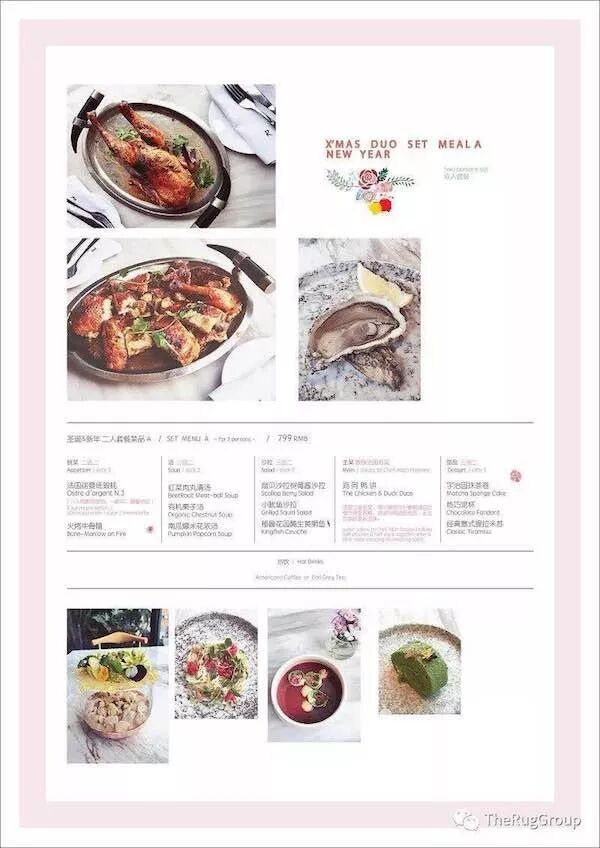 The Rug's new winter menu is in and with it comes a set meal for holidays. Grab your significant other or a significant friend and enjoy their meal for two. Build your meal from a range of options, including foie gras, Boston Lobster with herbs, red velvet yogurt cake, and mussel stew. Yum and yum! RMB 799 or RMB 1199 (luxury set) for two. The Rug