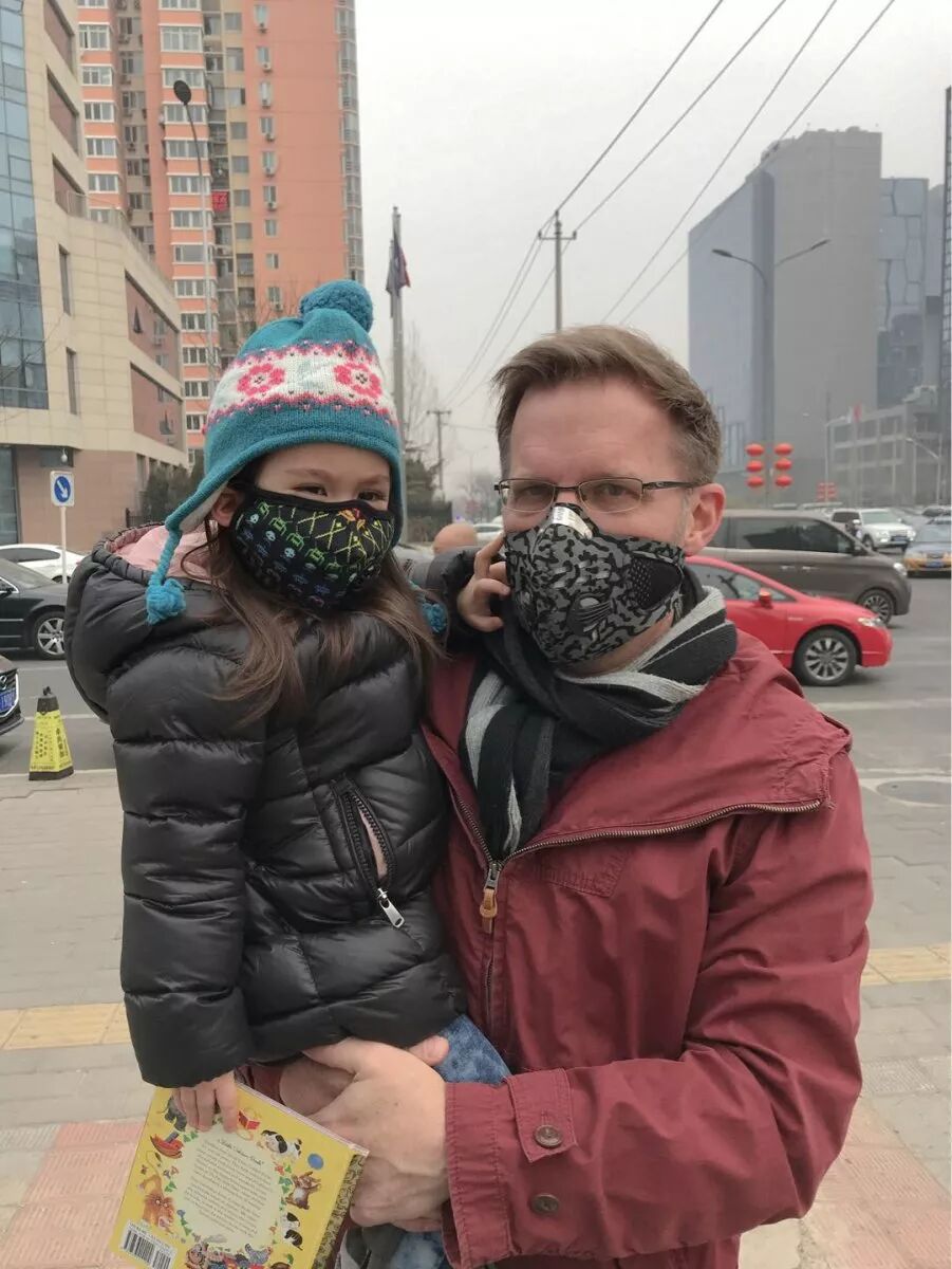 Geiger with his daughter. He tells the Beijinger that "my toddler has grown up thinking the sky is normally white."