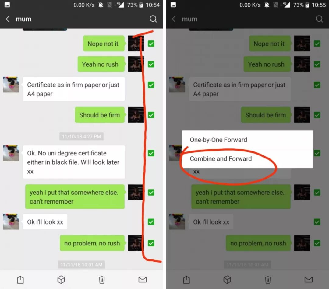A convenient feature used daily by many Chinese locals. Gone are the days when you had to screenshot entire conversations that you send onto other friends. Just press and hold on a message, select the messages you want to send and you’ve got yourself a condensed chat history that you can forward on to your heart’s content.