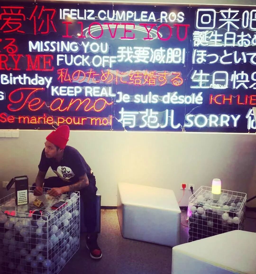 The decor is hip-hop-meets-skater-boy-certified fresh, with swear words strewn along the walls, '90s hip-hop blaring from the speakers, neon lights gleaming overhead, and glowing cubes for seating. It's an atmosphere akin to a Busta Rhymes video, and probably not somewhere you'd take gran when she's in town.