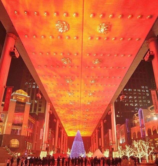 The 250-metre long, 30-metre wide panel showing Christmas images at The Place shopping plaza in Beijing