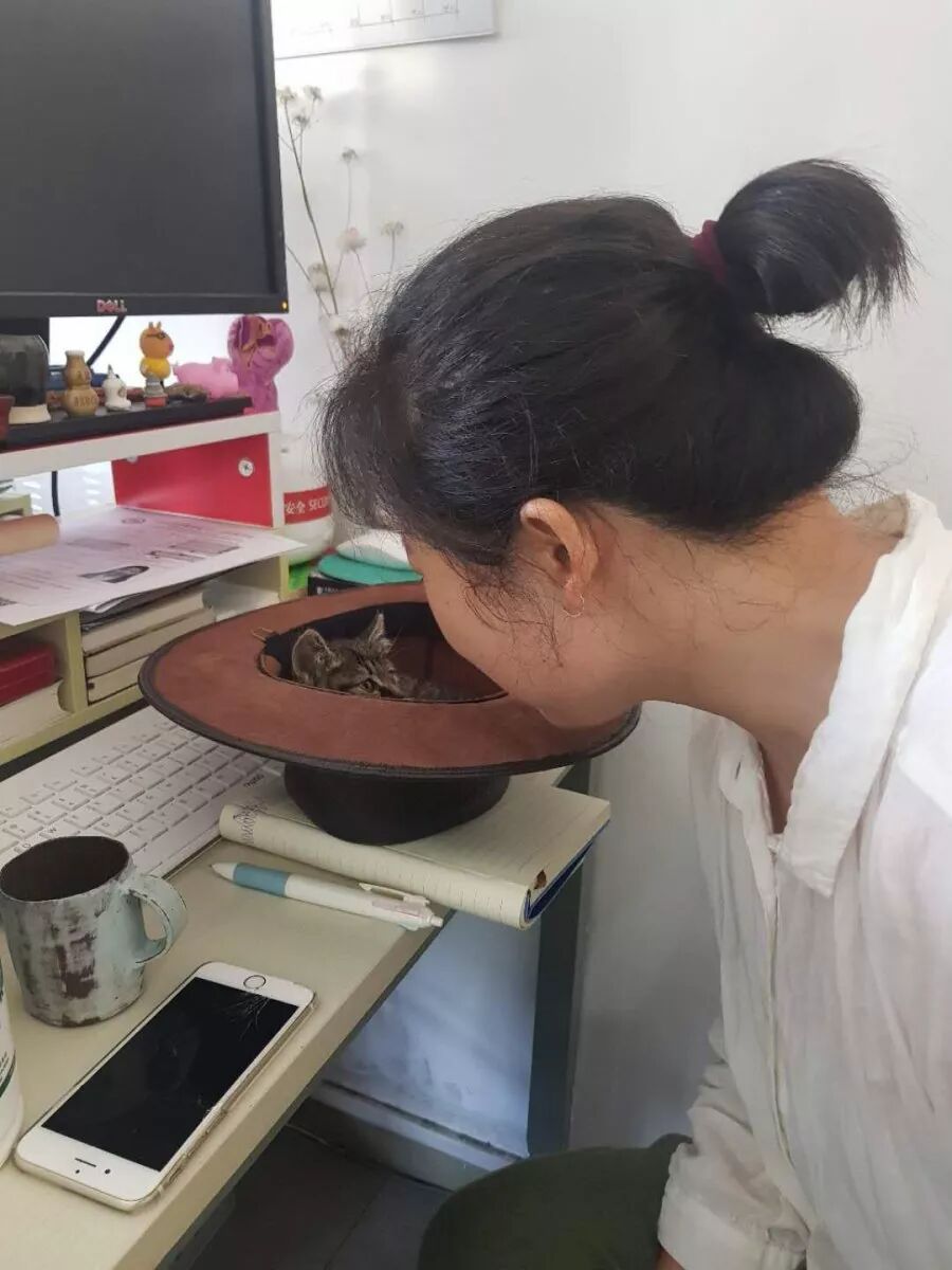 Well on her way to a full recovery, Xiao Ke enjoys playing with cables, helping me write, and sitting in my colleague's hat