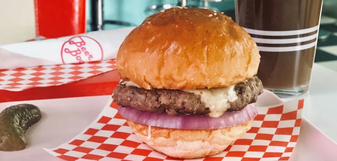 Will Beer Boom be a boon for Sanlitun? Or will it go bust? Such questions are sure to reverberate in your mind as you stop by the recently opened Gongti burger and craft beer joint. The owners have strived for a '50s diner vibe with puffy peppermint striped booths and stools, checkered tile floors, LPs, vintage Coca Cola signs, and balloons aplenty. While the decor is a bit tacky, their classic burger exceeds expectations thanks to a tender, juicy, and smoky Australian beef patty, gooey mozzarella, and fluffy buns.