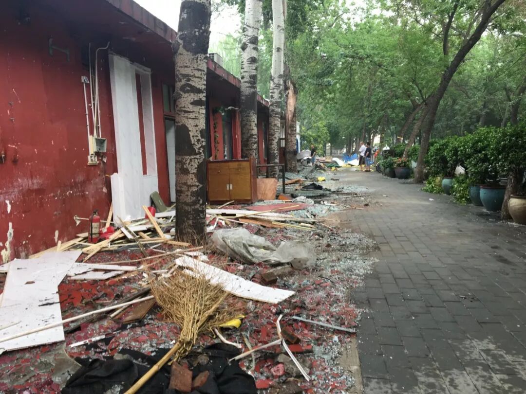 One of the longest standing strips of restaurants in the Sanlitun area fell under the 拆 chāi today as multiple venues in the north part of the neighborhood were knocked down.