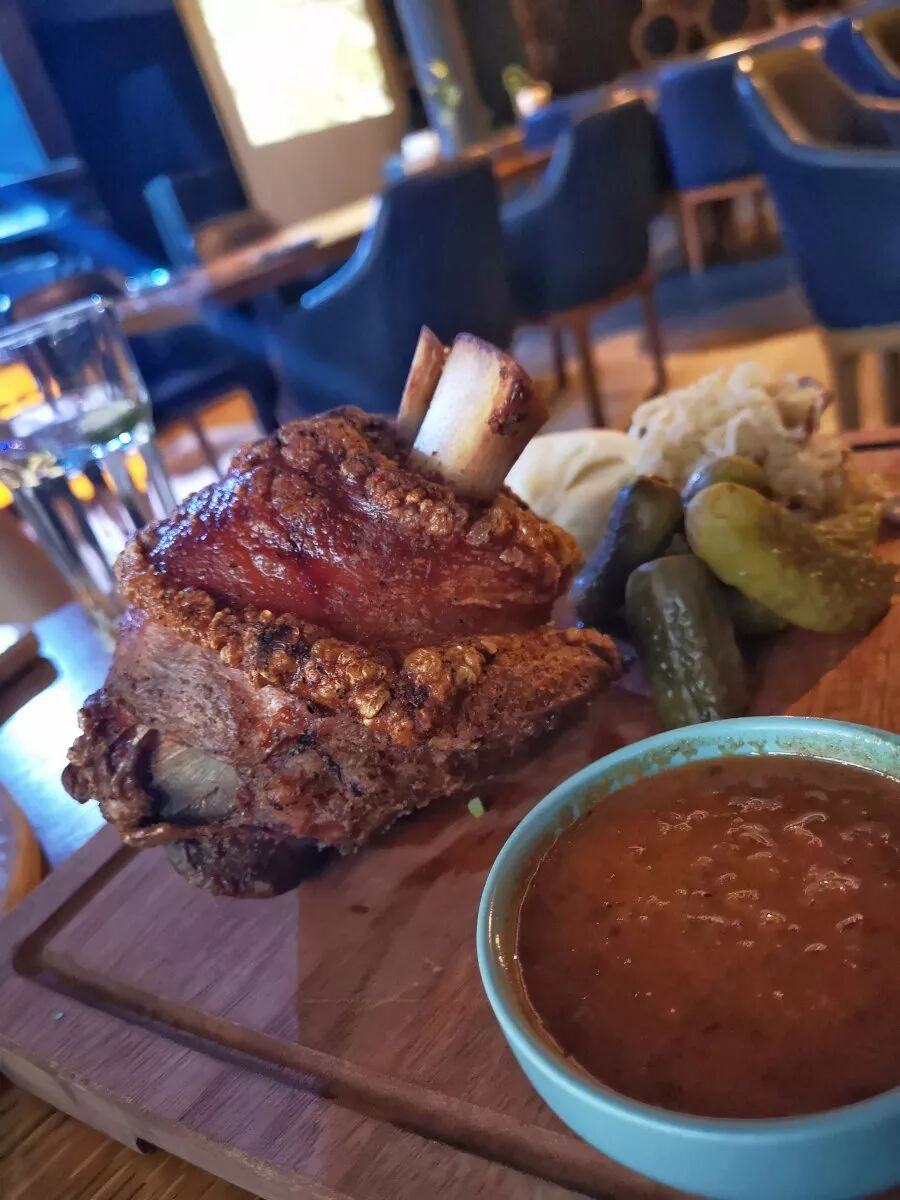 The pork knuckle is just as good as any others served around town