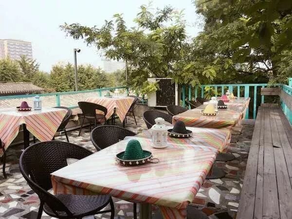 French café TiensTiens boasts one of the biggest rooftop spaces in the Sanlitun area yet is somehow usually mercifully free from the crowds that throng the surrounding area (except perhaps during weekend brunch hours). With a variety of seating, from standard tables to comfy sofas, TiensTiens is the perfect place to grab a French-influenced lunch (try the buckwheat galettes), hole up with a coffee and a book for the afternoon or sit and sip a glass of imported French cider as the sun goes down. They also have a resident DJ, DJ Peter Stone, who plays sets on the rooftop on Friday and Saturday nights (until the weather gets too cold).