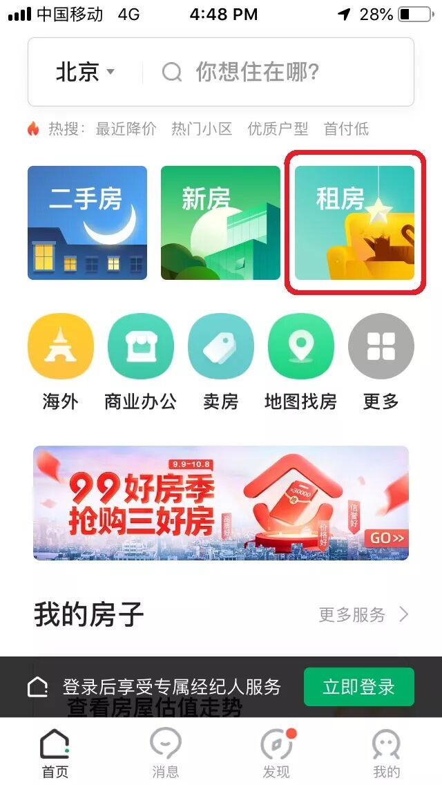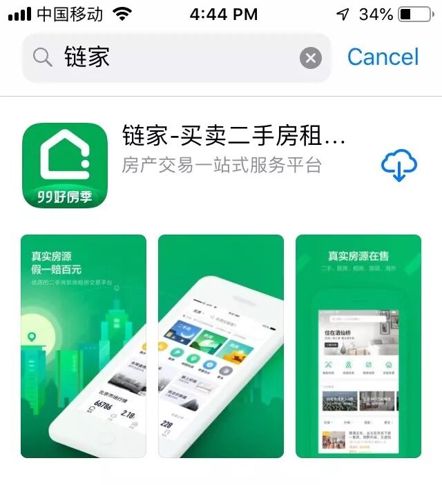 1. Download the Lianjia app, you should be able to find it just by searching for '链家' in the app store.