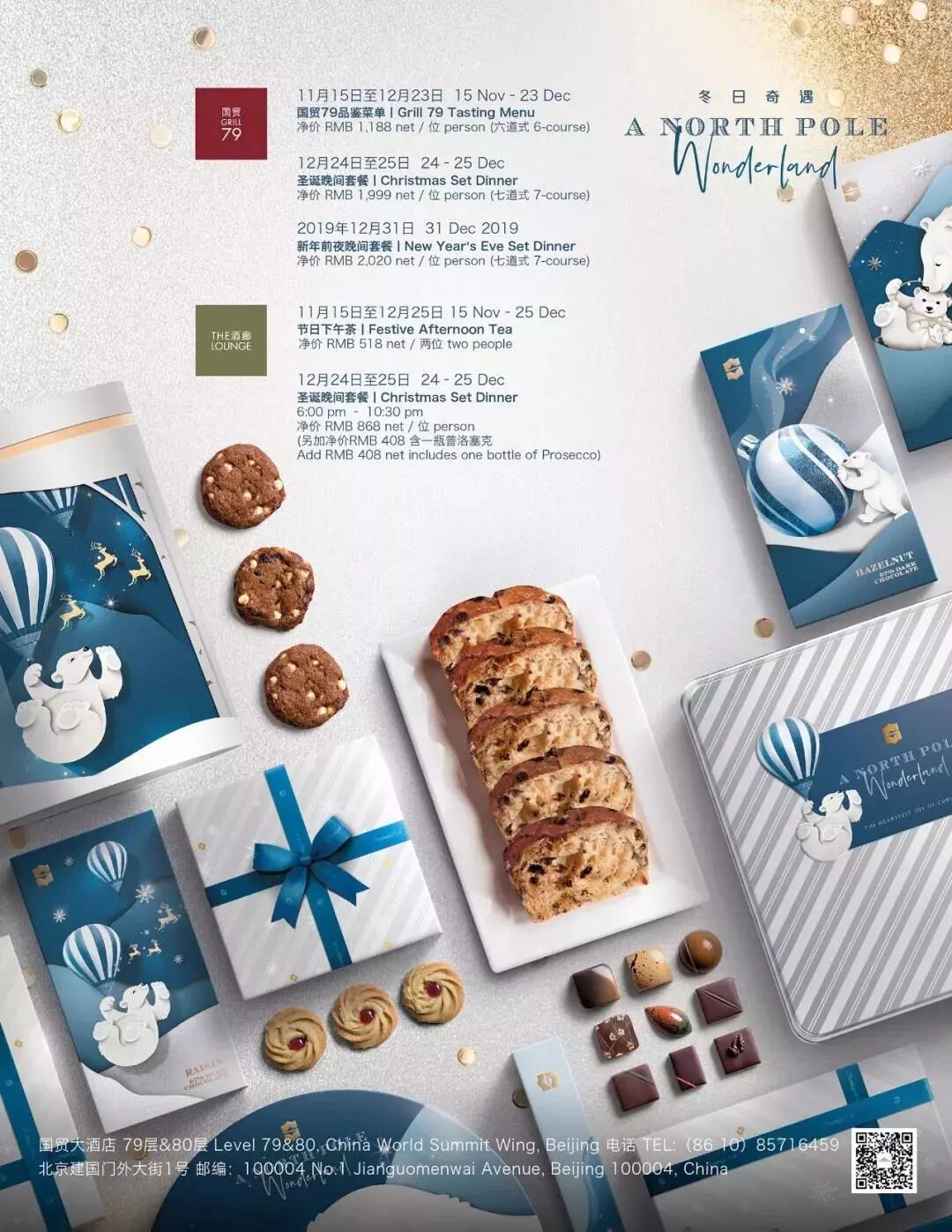 And even if you don’t win today’s prize, now’s the time to consider booking a staycation. Through Dec 25, pay a mere RMB 50 on top of the price of any hotel stay and you’ll get a “Dining in the Clouds” food and drink credit worth RMB 300 to kick off your holidays in style. Enjoy a festive dinner at Grill 79 high above the lights of the city or bid farewell to 2019 at Atmosphere’s retro-themed New Year’s Eve party.
