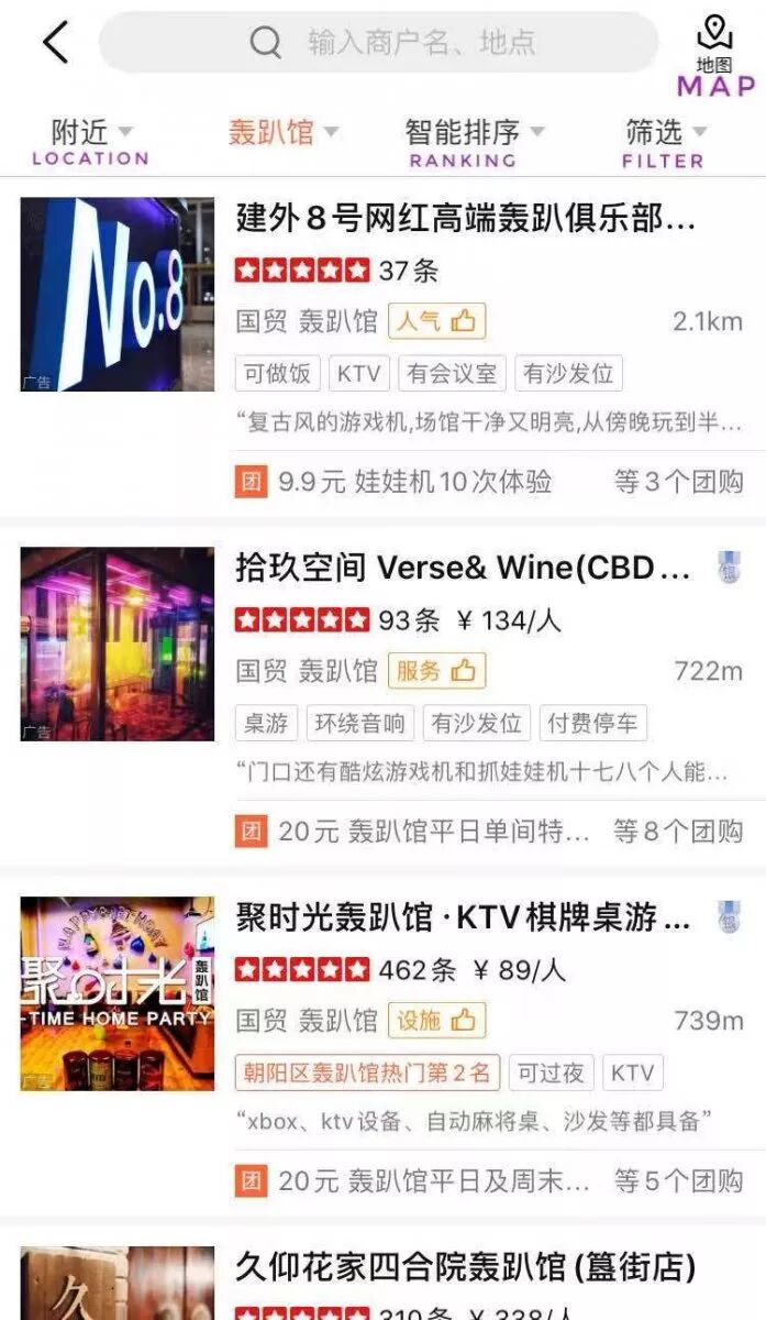 On the home screen, swipe left for more options. If it does not appear, type 轰趴馆 into the search bar.