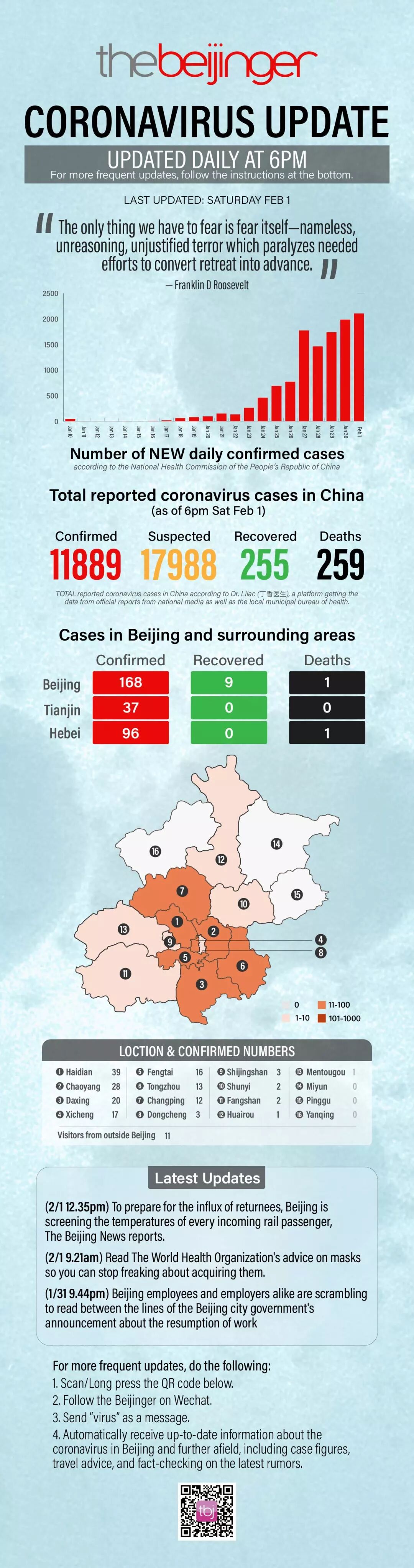 information on the number of coronavirus cases in Beijing and China and