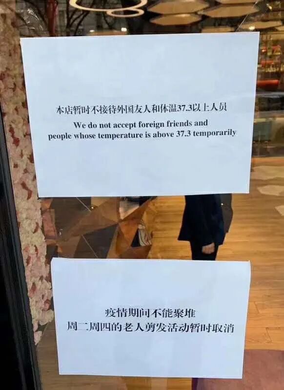 The video comes at a fraught time. Rumors abound of establishments not letting in foreigners and incidents of perceived xenophobia are on the rise as the number of coronavirus cases rise internationally and people return to Beijing. One widely shared image shows a sign in a restaurant window that reads "We do not accept foreign friends and people whose temperature is above 37.3 temporarily [sic]." Many falsely attributed that sign to Q Mex despite another sign on the window, also visible in the picture, clearly referring to hair cuts in Chinese – a service that Q Mex does not provide.