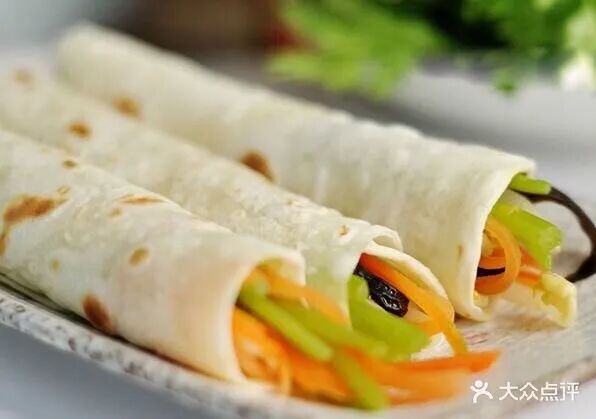春饼 chūnbǐng, literally "spring pancakes," refers to a dish of plain wheat flour wrappers (sometimes colored with spinach or carrot) that are served alongside a variety of small stir-fried dishes, which diners then wrap in the pancakes and eat (a bit like Peking duck). Chunbing are typically associated with two traditional festivals: 立春 lìchūn, the first solar term of the Chinese agricultural calendar, which marks the beginning of spring, and 龙抬头 lóngtáitóu, the second day of the second month of the Chinese calendar. Chunbing Jingweicai is a favorite of the denizens of Beixinqiao and Yonghegong.