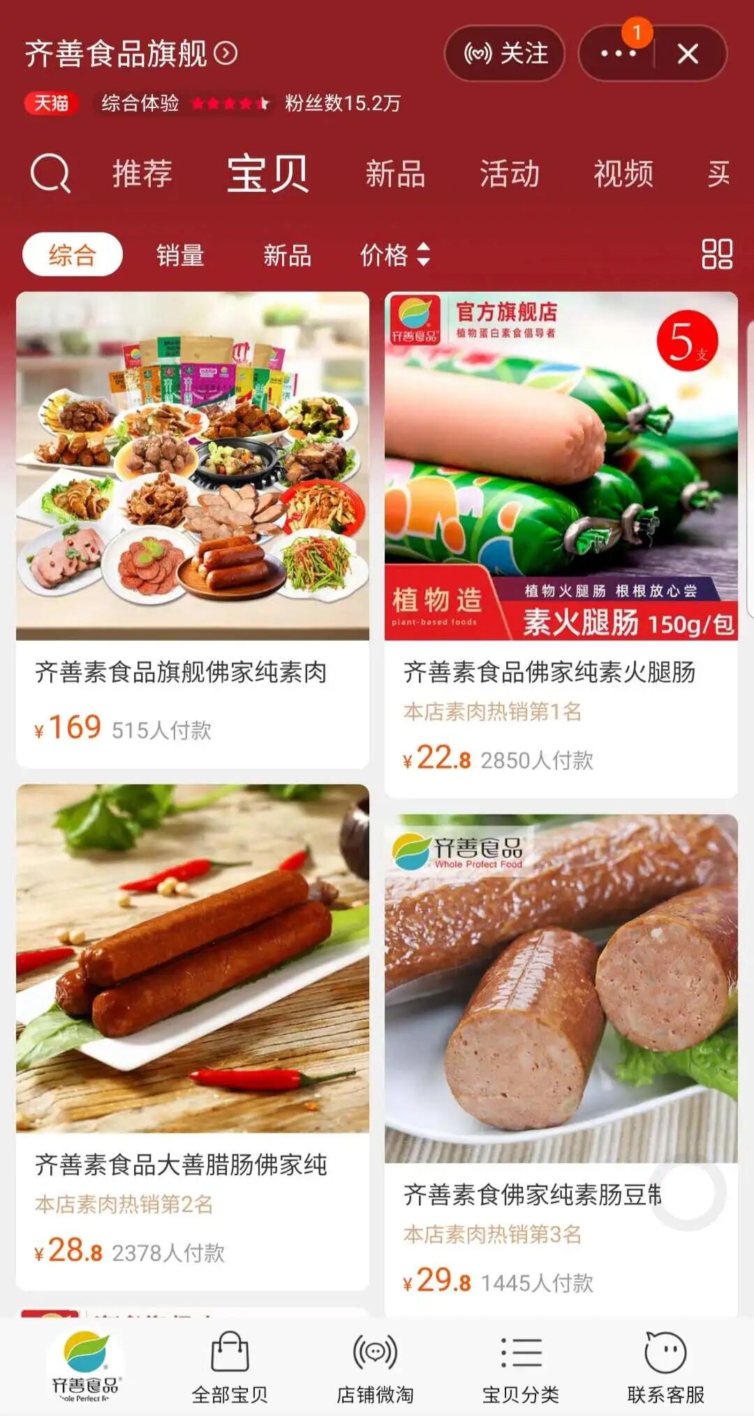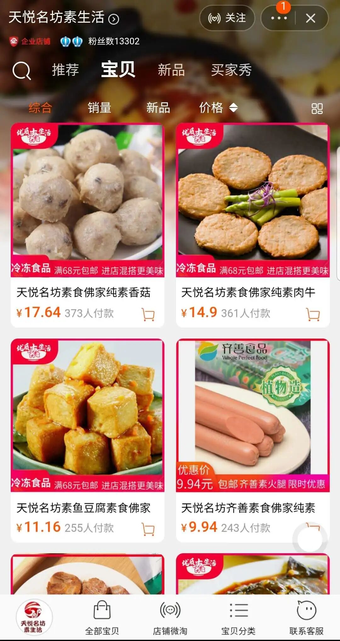 Offering a variety of prepared faux-meats, this store specializes in Chinese cuisines, from Sichuan-flavored sausages to prime lamb pieces and plain Beijing roast duck, all made from a soy-based mixture. And if you can't make up your mind, the Taobao store offers an assorted pack of 16 types of meat for RMB 169.