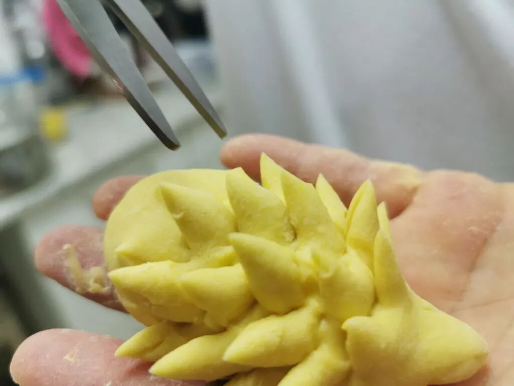 Shape the mantou into your desired design, below I show how to make a mantou rose, crab, and porcupine.