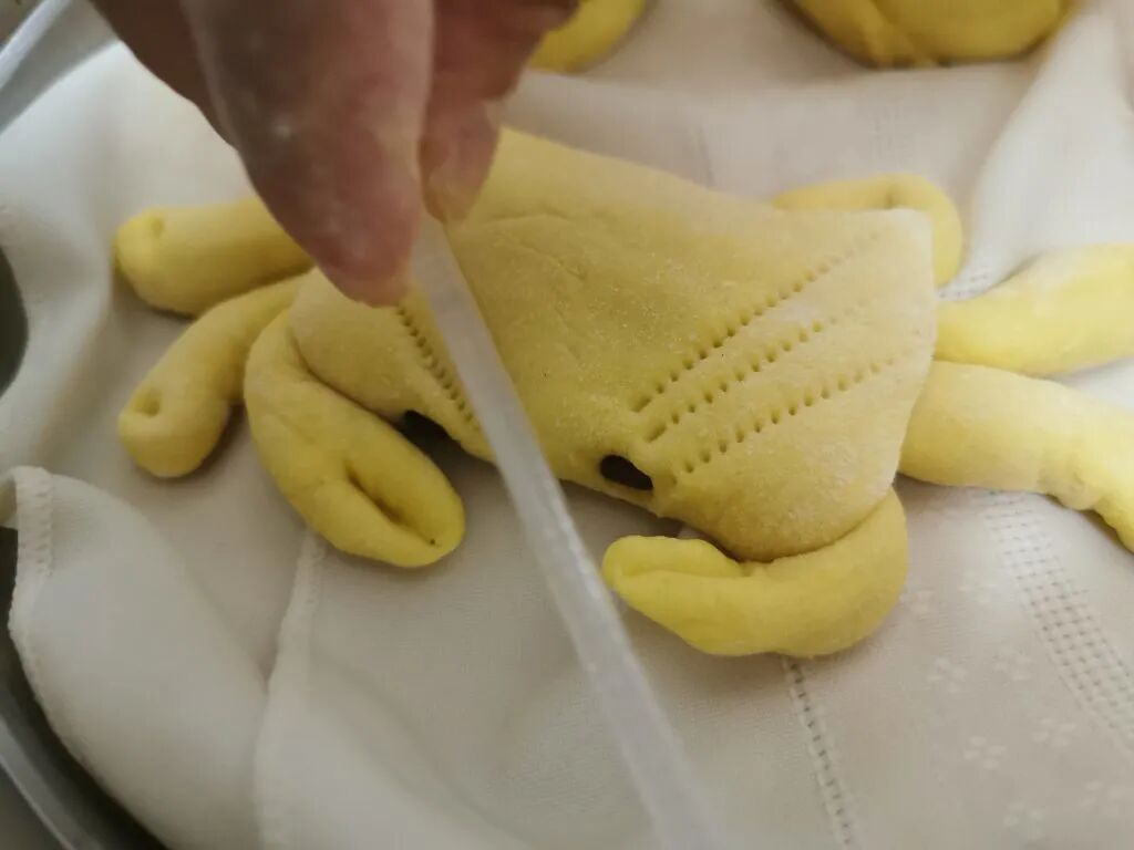 Lastly, take a comb and press it into the crab’s back repeatedly to form a pattern. Place the finished product in the steam pot and move onto the final design.