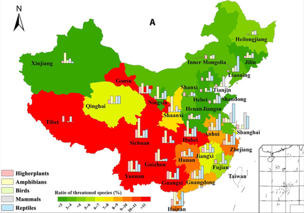 The study notes that regions with more biodiversity are more likely to suffer from losses – in other words, the more species there are in a province, the more that province has to lose – but the authors also calculated the ratio of loss, and Beijing made the list of regions with less than 3 percent species loss. As a whole, that list is rather short, comprised of Beijing, Hebei, Tianjin, Henan, Shandong, and Xinjiang.