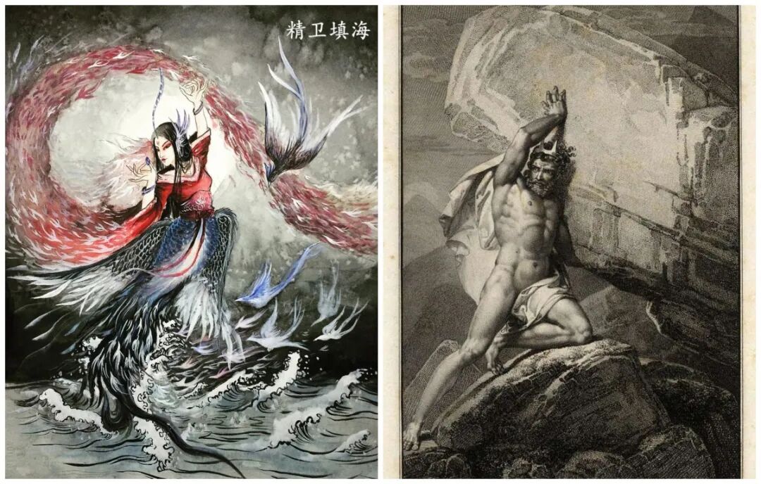 The headless warrior is another common character in world folkore, and we happen to find two beheaded fighters wandering in the fields of China as well as in the American tale, Legend of Sleep Hollow. But the latter can actually be traced back to the Irish character of myth, Dullahan, who maintains his head in his arm and rides around on a creepy gothic wagon. His Chinese cousin, 刑天 Xingtian, lost his head during his fight with the legendary Emperor Huang, and the emperor even created a mountain to seal his head in. However, this valiant warrior refused to surrender. He turned his nipples into eyes and his belly button into a mouth. In this way, he was able to continue his battle.