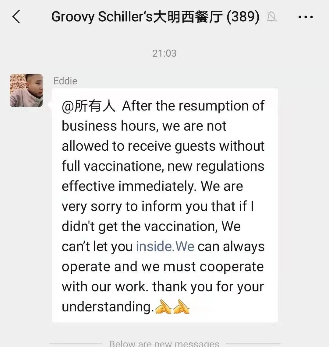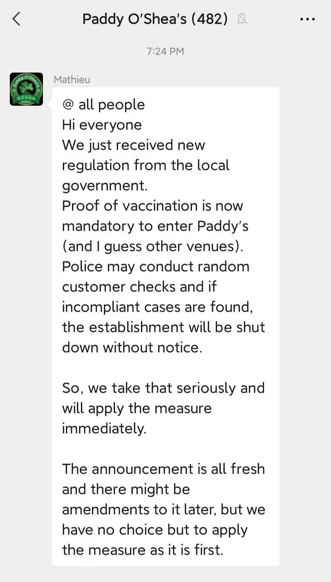 In a WeChat post sent this morning, The Local made the unequivocal statement that “unvaccinated customers will not be allowed entry. This is a strict policy, and will be enforced indefinitely.”