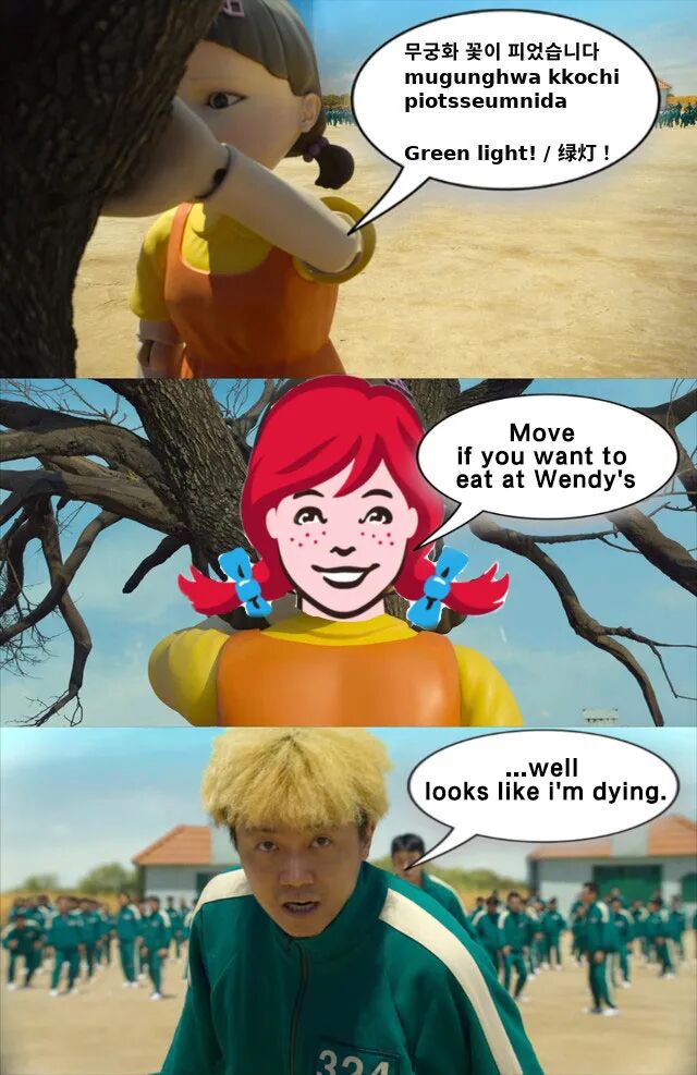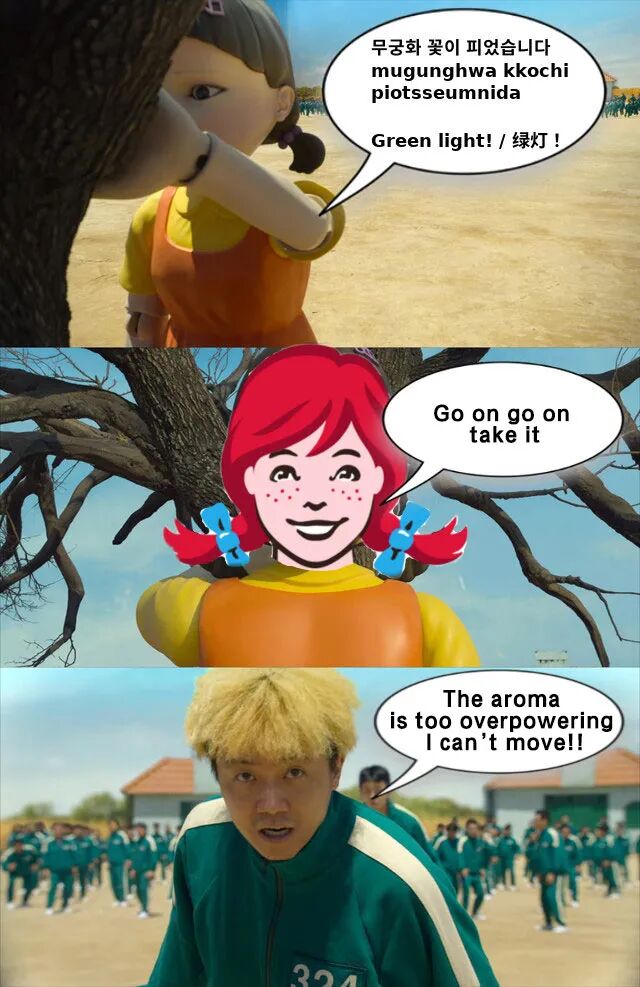 To round off our caption contests, here are your takes on dialogue from yet more scenes from Korean drama Squid Game: