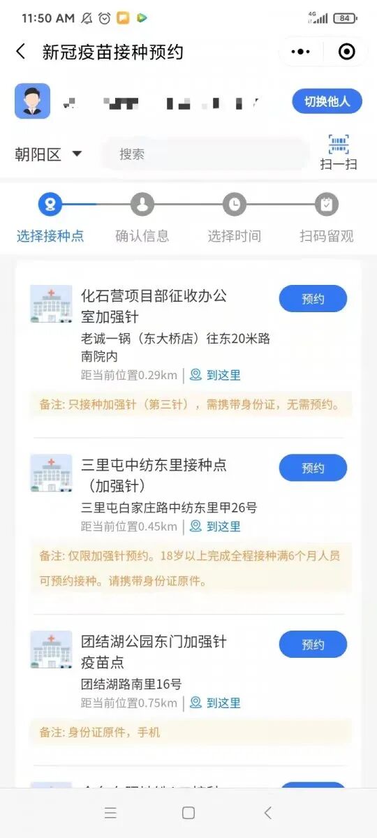 When you search in English, you’ll be pointed to one location doling out boosters – Datun Hospital. And yet, when you search in Chinese (if you do this you’ll need to re-register) there will be more options on the list based on the city location you choose.