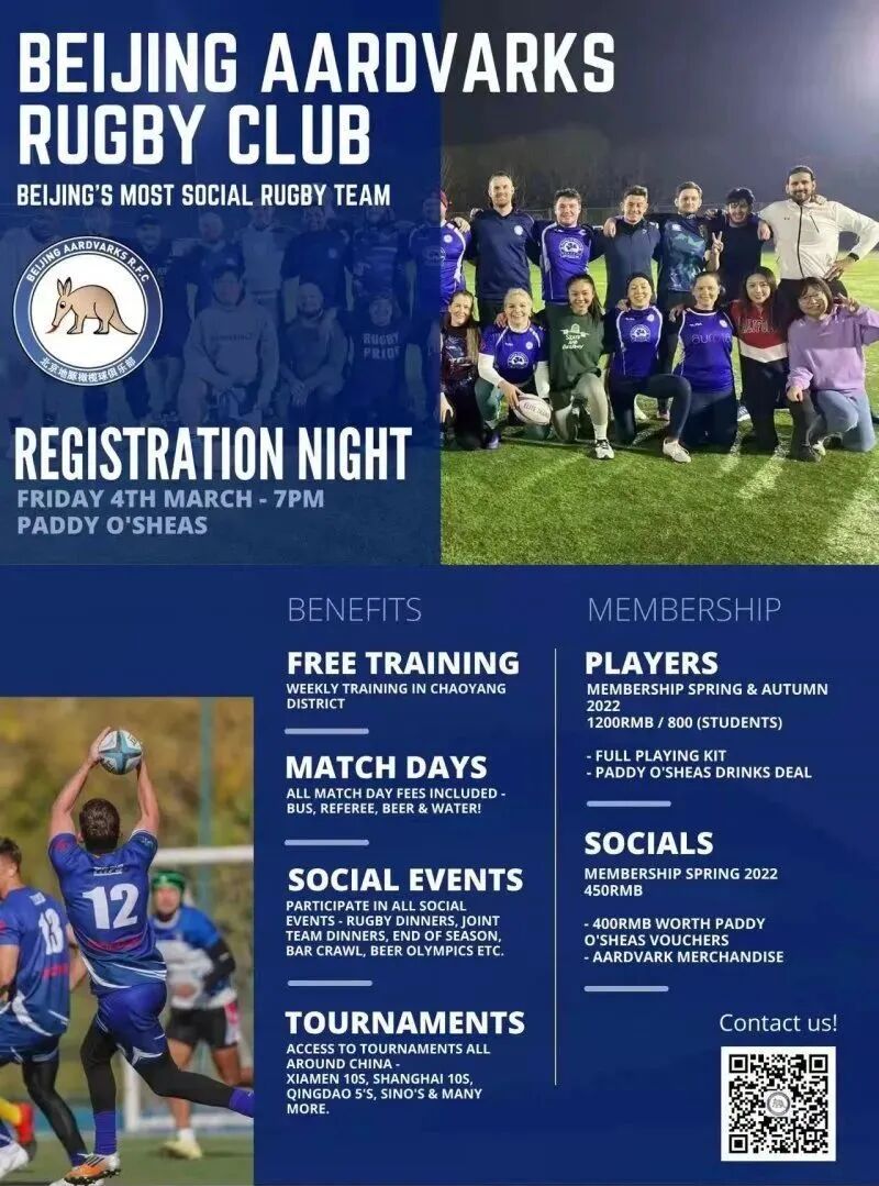 Beijing Aardvarks Rugby Club will be holding their Registration Night