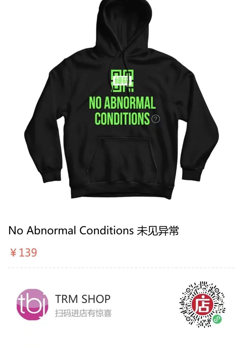 This hoodie can attest to that. It's like wearing a giant green code on your chest to tell the world you've got no abnormal conditions -- at least, from a Covid standpoint.
