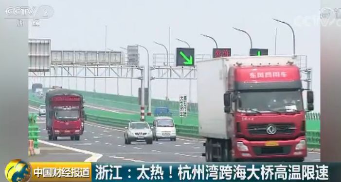 连日来的高温炙烤下,杭州湾跨海大桥的桥面温度已超过了60℃,高速交警部门这几天已对大桥采取了高温限速措施。