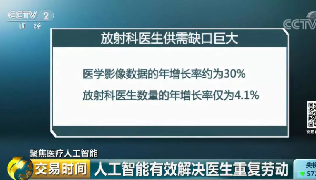 目前,中国医生资源缺口问题较为严重。有数据显示,我国医学影像数据的年增长率约为30%,而放射科医生数量的年增长率仅为4.1%,放射科医生数量的增长远不及影像数据增长。这个现象意味着放射科医生在未来处理影像数据的压力会越来越大,而人工智能的出现可以有效解决这方面的问题,用机器解决重复劳动力。
