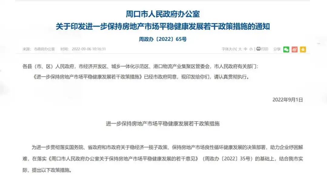9月6日,本已入秋拉低的气温突然蹿热,周口市区达到了34℃。市区大庆路与文昌大道交叉口东北角,一家房地产企业打出的广告格外显眼:免30年物业费。在房地产市场低迷的背景下,企业采取各种办法吸引购房者的目光。而政府部门亦没有坐视不管,也纷纷制定楼市新政,刺激房地产消费市场。就在最近,周口市出台的楼市新政备受关注,其中,不少针对购房群众的优惠政策,是前所未有的。大河报·豫视频记者查阅资料获悉,我省的郑州、信阳、济源、驻马店等地,也在今年相继出台了一系列稳定房地产市场的政策,以促进房地产行业平稳健康发展。9月6日,周口市碧桂园天玺湾,购买首套住房的小赵,刚刚和售楼部经理算了一笔账。清单之上,详细列着首付款项和每月还款额度。对照刚出台的楼市新政,观望很长时间的小赵,决定出手了。“现在有补贴,还是比以前啥都没有的时候划算。”小赵说。9月1日,周口市人民政府办公室印发了《进一步保持房地产市场平稳健康发展若干政策措施的通知》,出台多条优惠举措,以保持房地产市场良性循环。大河报•豫视频记者注意到,相比之前的楼市政策,此次举措涵盖更全面、优惠更具体。周口市规定,凡2022年3月1日至12月31日期间,在周口市购买新建商品住房、建筑面积在144平方米以下的,以货币形式一次性发放购房补贴。具有大中专学历的,补贴标准为0.6万元/人;具有本科学历的,补贴标准为1万元/人。此外,周口市将公积金最高贷款额度由45万元提高至50万元,对于引进的高层次人才,公积金最高贷款额度提高至60万元。在公寓、写字楼方面,凡在今年3月1日至12月31日期间,购买上述房产的(不含商铺)的,则按照实际缴纳税款的50%进行补贴。“这次政策激励的力度之大,是前所未有的,必将对保持周口房地产市场平稳健康发展,起到积极的促进作用。”周口市恒创房地产营销公司副总经理张天宝说。大河报•豫视频记者查阅资料获悉,不仅周口市,我省多地都出台了稳定房地产市场的一揽子措施,以期提高购房的积极性。紧邻周口市的驻马店市,在今年的5月18日出台了《驻马店市促进房地产业良性循环和平稳健康发展的若干措施(试行)》,提出优化用地供应、加大信贷支持、简化审批流程等18条具体措施,促进房地产行业良性循环和平稳健康发展。同样,该市的政策也表示,根据购房人才类型不同,执行1万元到5万元不等的补贴额度。今年6月中旬,郑州市出台相关政策,支持房地产市场发展。其中,全面推动首套房4.25%贷款利率执行、促进二套房首付比例40%等相关举措,很受购房者欢迎。紧接着,济源市也出台了楼市新政:对于购房者出现房贷断供的,可延期还本付息。而许昌市的楼市新政除了对拥有大学及以上学历、技工技师院校毕业人才实行购房补贴外,还加大个人住房按揭贷款投放,下调住房贷款利率。对已经拥有一套住房并已结清相应购房贷款,为改善居住条件再次申请贷款购买普通住房的家庭,金融机构可按首套房贷款政策执行。除了地市级,不少县区也出台了保持房地产市场稳定健康的相关政策。比如,信阳市的罗山县,实行了“一人购房全家帮”举措,购房者提取本人住房公积金账户中存储余额不足的,可提取配偶、父母、子女住房公积金账户中的存储余额。此外,该县还鼓励城镇居民进城购房。对于购房群众而言,政府出台的楼市新政,迎合了大家对购房优惠的消费期待,坚定了相当一批观望者的购房信心。而对于房地产企业来说,政府出手刺激消费,也让他们缓解了不少库存压力。毕竟,这些年“房子是用来住的,而不是炒的”理念,已经深入人心。对于政府部门出台的楼市新政,业内人士、周口建业的营销经理申先生表示,一揽子举措必将对房地产市场的发展有着直接的促进作用,同时,也将对地方经济和各行各业的发展,起到直接的带动作用。房地产从业者丁先生亦认为,政府从有限的财政资金里面挤出来一部分,补贴市民购房,是对房地产市场的大力支持,其目的就是促进整个行业的健康发展、良性循环。所以,从这个角度而言,各地政府制定楼市新规的深远意义,已经远远超出了补贴、降税本身的价值所在。本作品著作权归【大河报·豫视频】所有,任何第三方未经授权,不得转载,违者必究。