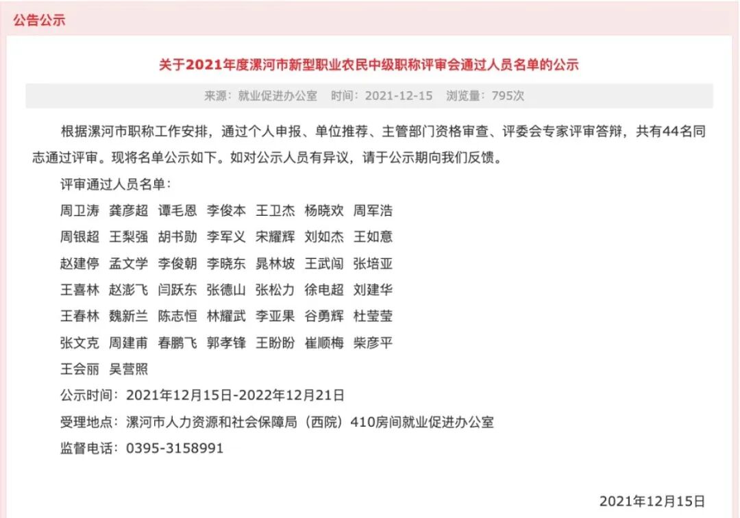 △2021年度漯河市新型职业农民中级职称名单公示