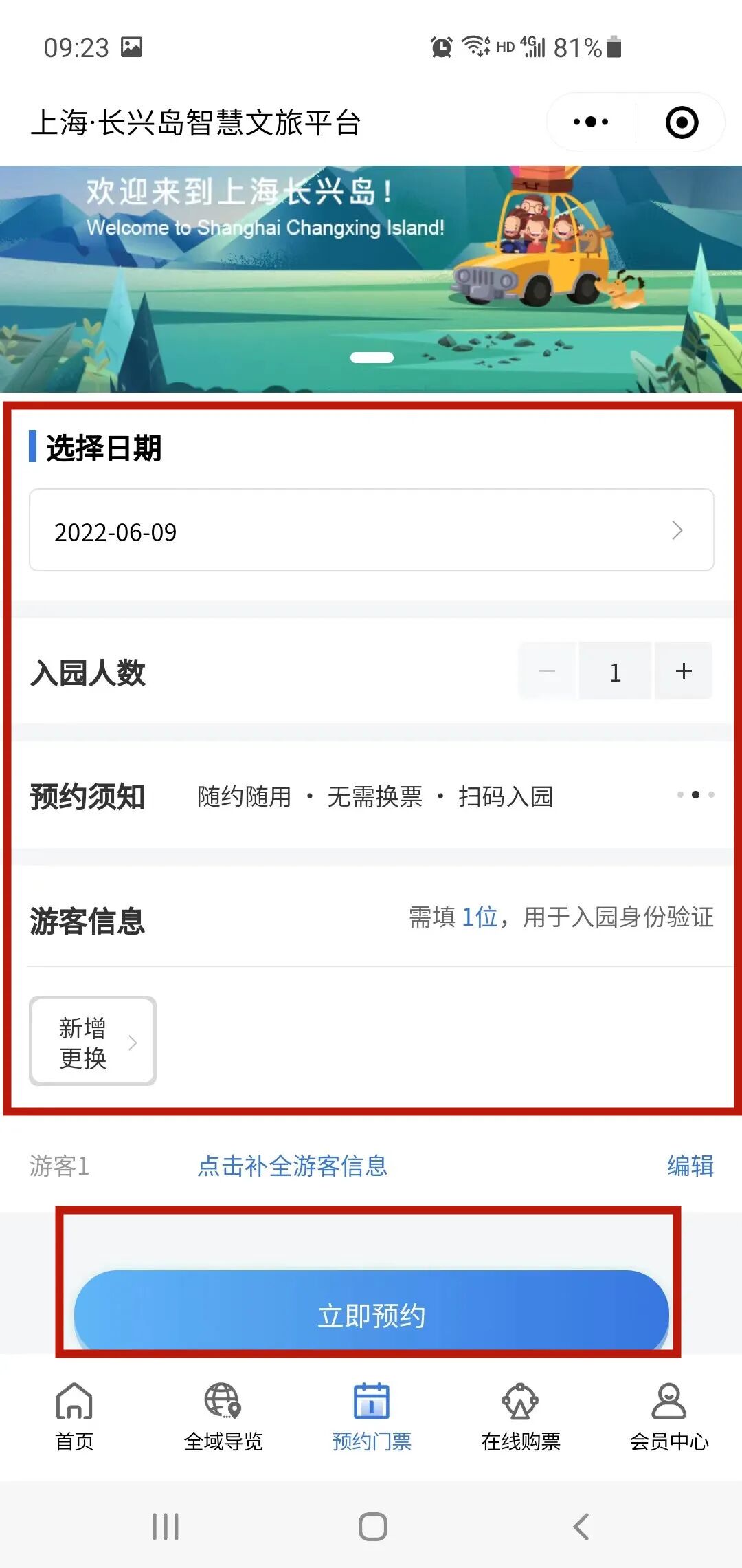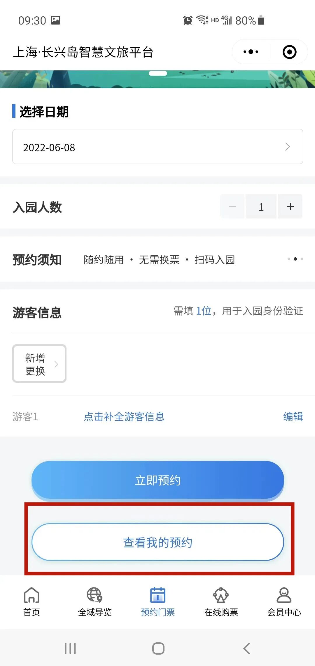 长兴岛郊野公园公众号——预约游园——预约入园——查看我的预约——点击查看二维码