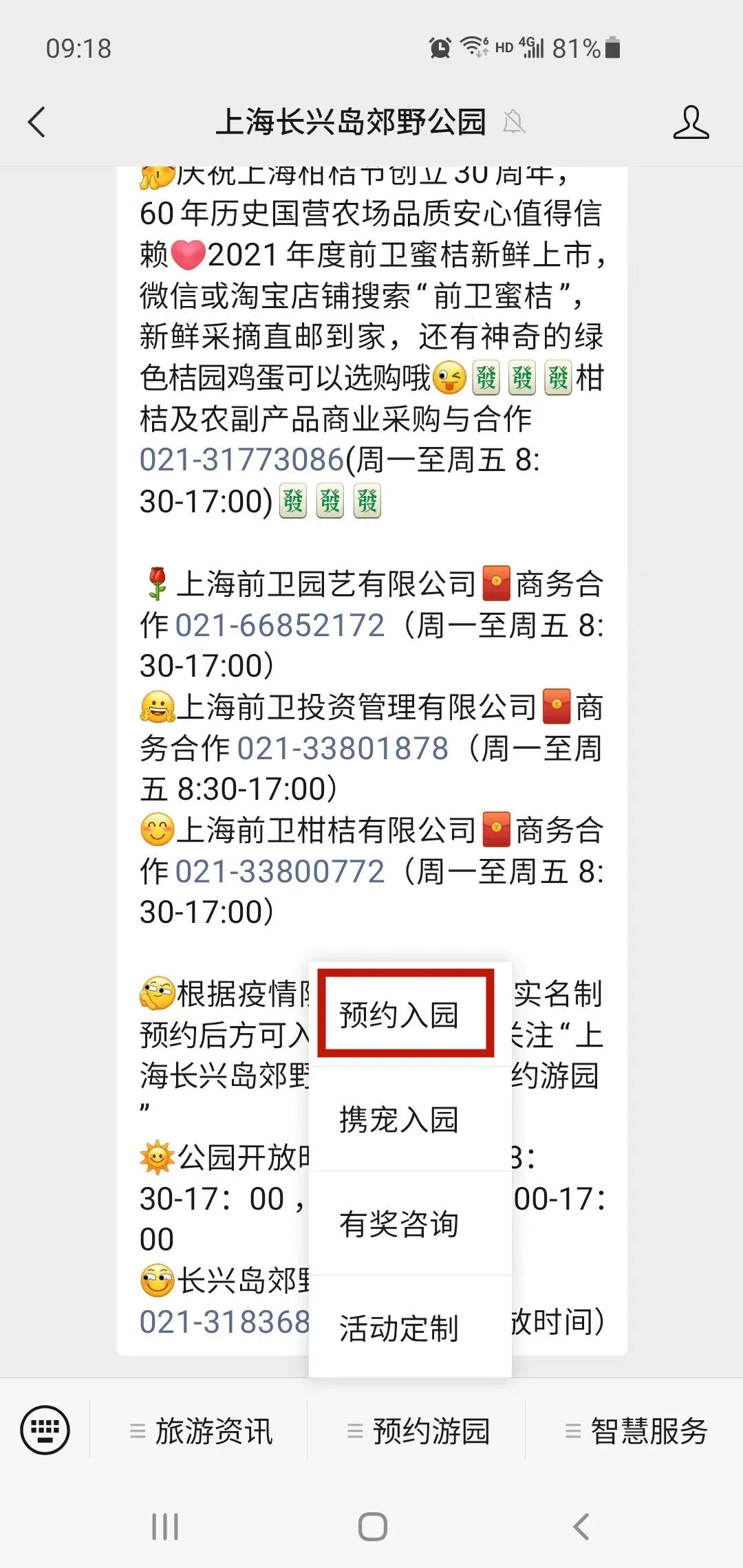 1.搜索并关注“上海长兴岛郊野公园”微信公众号