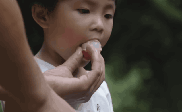 ▲孩子立马一口吸掉甜甜的果肉 图源老广的味道