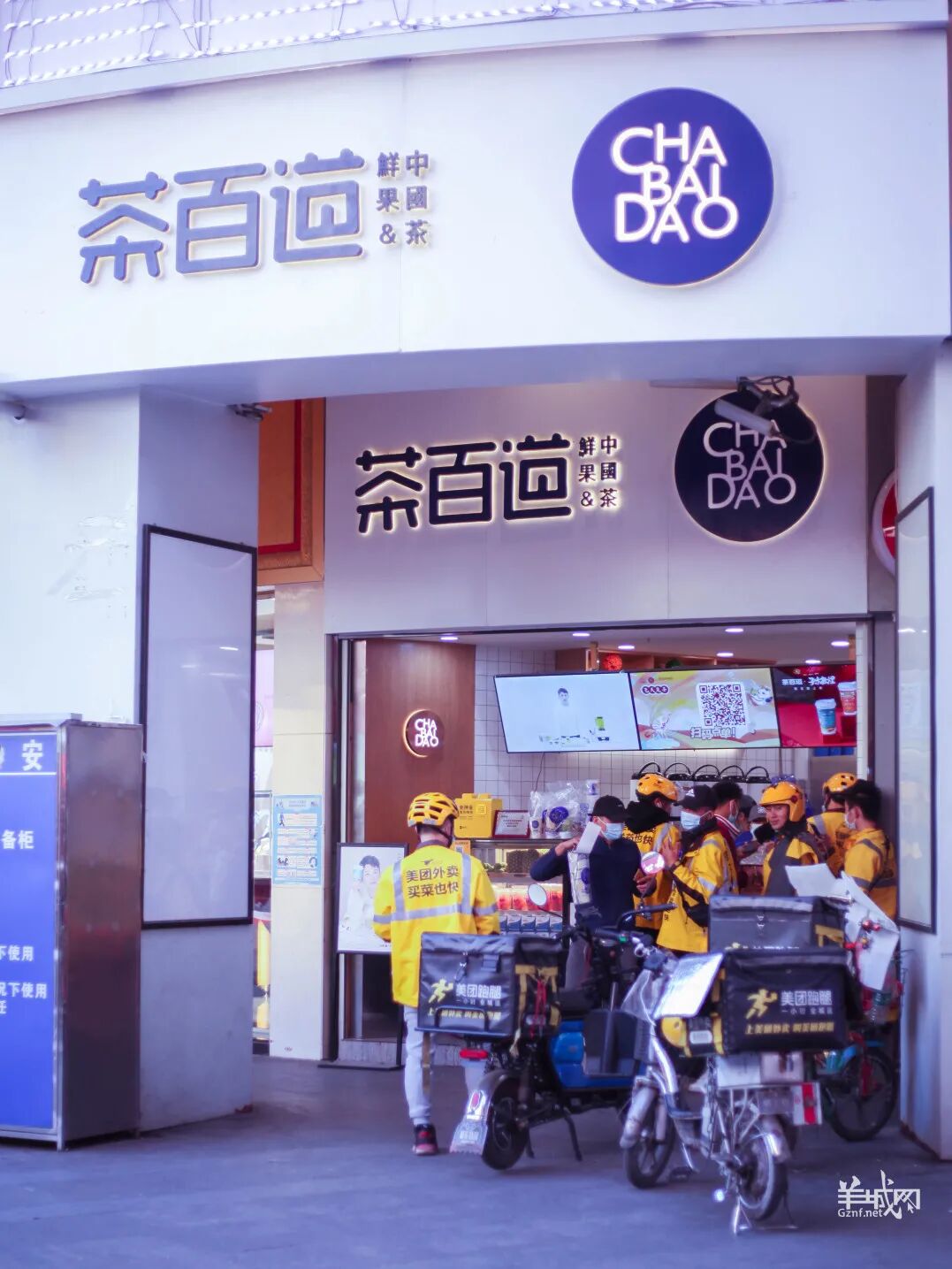 因为这聚集了大量的饮料店,所以外卖小哥也是成群挤坐在店铺前,玩着手机、聊着天等待饮品出炉。